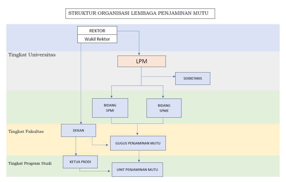 Lembaga Penjaminan Mutu (LPM) di perguruan tinggi berperan penting dalam menjamin kualitas pendidikan dan mendorong budaya mutu di seluruh lingkup institusi. Struktur organisasi LPM dirancang untuk memastikan pelaksanaan sistem penjaminan mutu internal yang komprehensif, yang melibatkan berbagai pihak, termasuk rektorat, dekanat, serta unit-unit program studi.